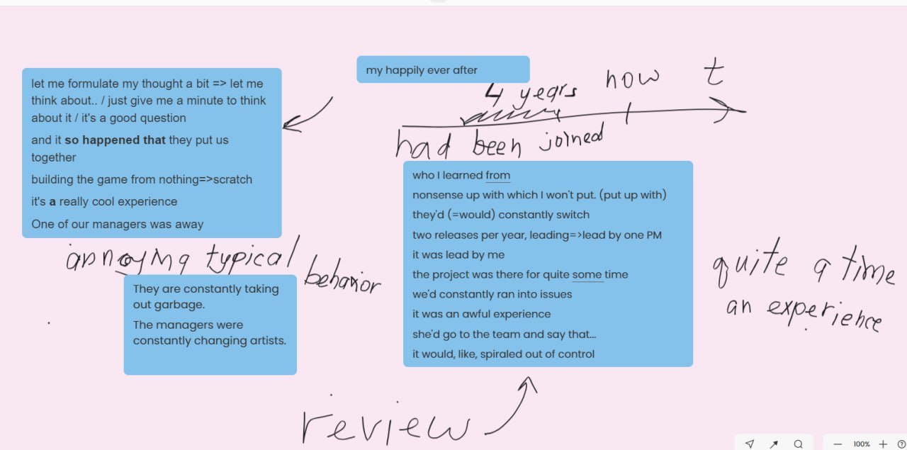 My role: I do the heavy work. I listen, take notes, and find the phrases you need