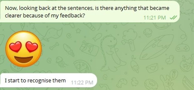 Examples of real-time feedback on live session and messenger screenshots